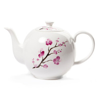 Porcelanowy czajniczk o pojemności 1200ml z dekoracją przedstawiającą modny wzór gałązek kwitnącej wiśni na białym tle.