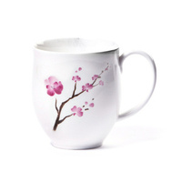 Zestaw składający się z porcelanowego kubka o pojemności 380ml wraz z metalowym zaparzaczem i przykrywką. Dekoracja przedstawia modny wzór gałązek kwitnącej wiśni na białym tle.