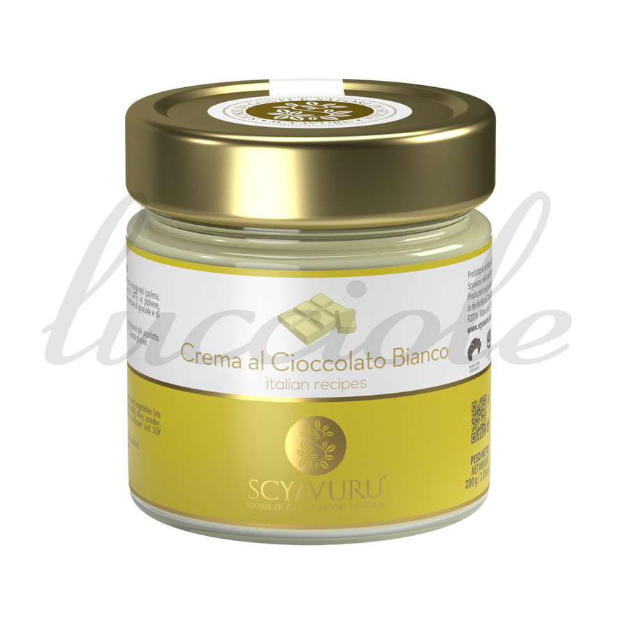 - Sycylijski krem o delikatnej konsystencji, jako masa do smarowania pieczywa lub naleśników, wypełnienie do wypieków, nadzienie do rogalików oraz wielu innych zastosowań. Produkt `Cioccolato Bianco` pochodzi od renomowanego włoskiego producenta `Scyavuru`.