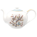Zestaw czajniczka o pojemności 500ml z filiżanką i spodkiem, z dekoracją w gałązki kwitnącej wiśni w delikatnych pastelowych kolorach.