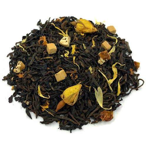 Chińska herbata Pu-Erh urozmaicona dodatkiem drobinek belgijskiego karmelu i aromatu toffee.