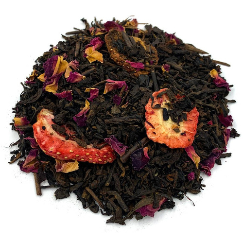 Chińska herbata Pu-Erh z dodatkiem cudownych truskawek i palonego karmelu, co łagodzi charakterystyczną ziemistość tej herbaty. Doskonałe połączenie smakowe, niezmiernie popularne od wielu lat.