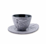 Żeliwna czarka wspaniale współgrająca ze stylistyką czajników, wewnątrz emaliowana, sprzedawana wraz z podstawką.