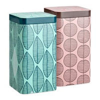 Pastelowe puszki sprzedawane w zestawie 2 sztuk, z litografią przestawiającą szkicowane liście na pastelowym tle. Doskonała jakość wykonania gwarantowana przez europejskiego producenta.