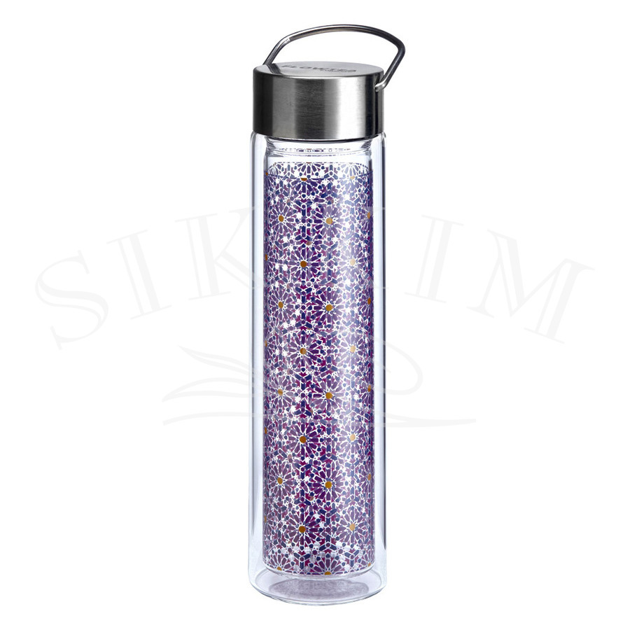 • Szklana dwupłaszczyznowa butelka do zaparzania herbaty lub po prostu na wodę, z piękną dekoracją umieszczoną na wewnętrznej warstwie, sprzedawana z neoprenowym ocieplaczem.