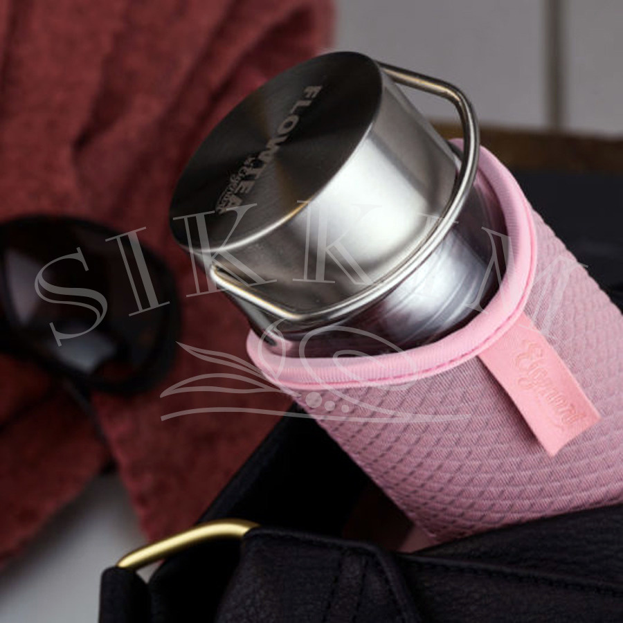 • Szklana dwupłaszczyznowa butelka do zaparzania herbaty lub po prostu na wodę, z piękną dekoracją umieszczoną na wewnętrznej warstwie, sprzedawana z neoprenowym ocieplaczem.