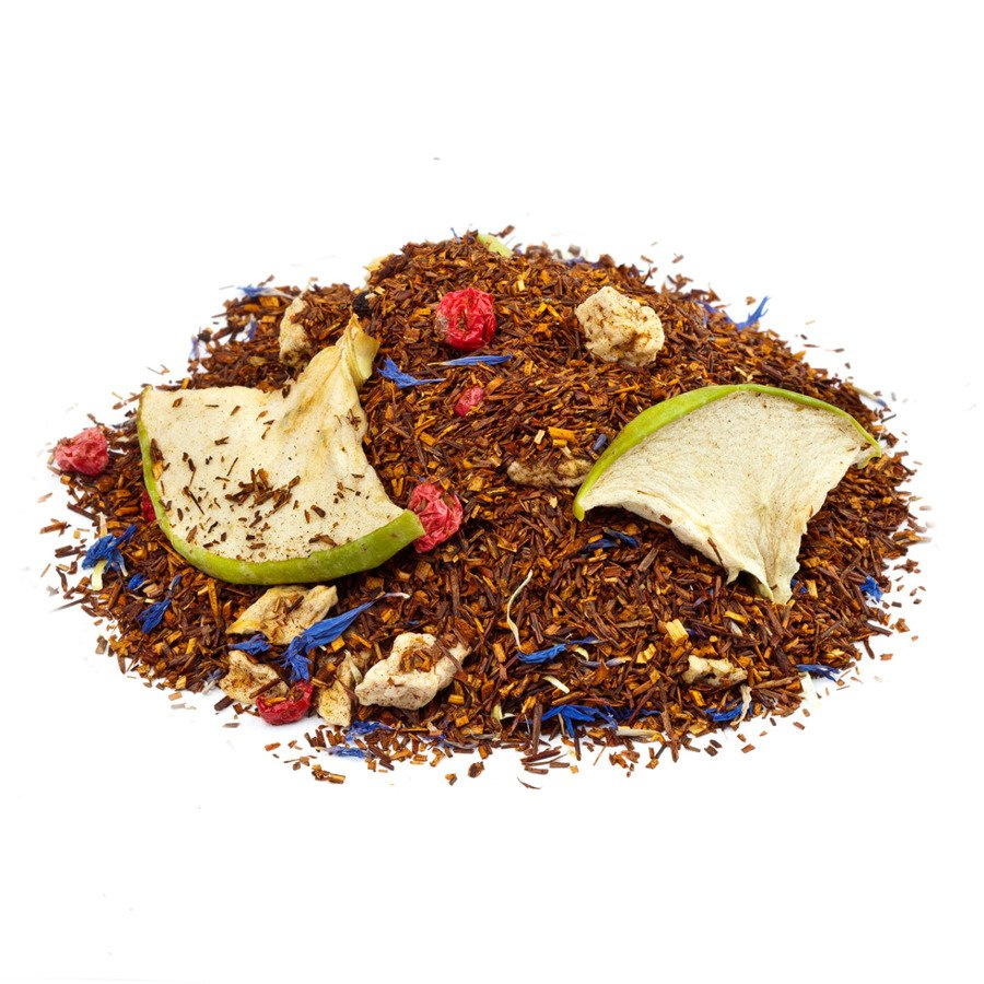 Herbatka Rooibos stworzona z myślą o kwitnącym jabłkowym sadzie, przepięknie pachnie pełnią lata, dojrzałymi zielonymi jabłkami i porzeczkami. Dodatkowo wzbogacona jest błękitnym kwiatem chabru. Napar to prawdziwe ukojenie dla zmysłów.