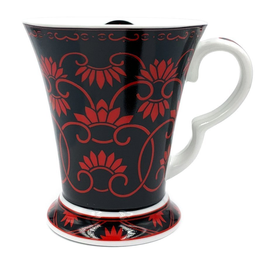 - Urocze i niewielkie kubki z czerwono-czarnymi ornamentami, wykonane z wysokiej jakości porcelany, pojemność około 200ml. Sprzedawane po dwie sztuki.