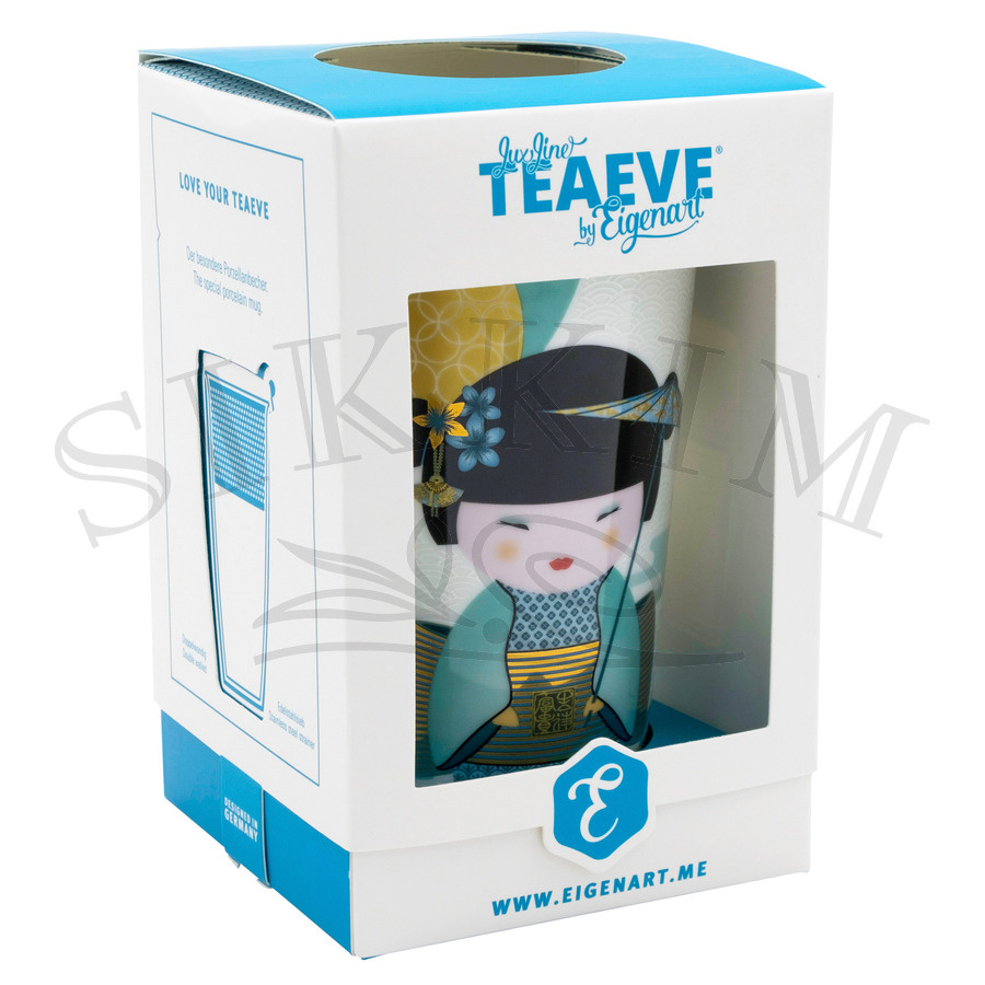 Kubek porcelanowy o podwójnych ściankach będących izolacją termiczną, dzięki której zawartość dłużej będzie trzymać właściwą temperaturę, jednocześnie chroniąc dłoń przed poparzeniem. W środku zmieścimy 350ml naparu, który z łatwością przygotujemy dzięki znajdującemu się w komplecie zaparzaczowi oraz przykrywce. Jako opcję można dokupić specjalną przygrywkę z tworzywa sztucznego, która przekształci kubek w zestaw typu `Tea to Go!`. Przy produkcji naczynia użyto techniki zdobienia pod szkliwem oraz na jego powierzchni, przez co nadruk sprawia wrażenie wielowarstwowego i trójwymiarowego. Doskonały efekt gwarantowany, jednak przy takiej dekoracji nie zaleca się zmywania kubka w zmywarce.