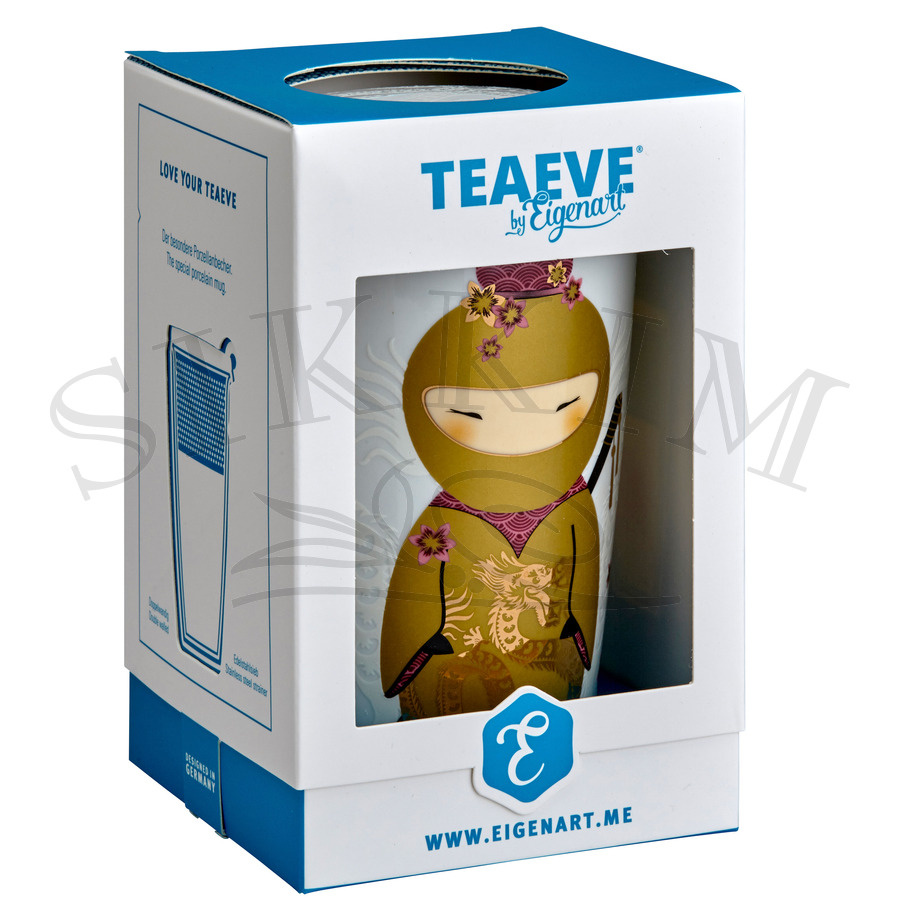 Kubek porcelanowy o podwójnych ściankach będących izolacją termiczną, dzięki której zawartość dłużej będzie trzymać właściwą temperaturę, jednocześnie chroniąc dłoń przed poparzeniem. W środku zmieścimy 350ml naparu, który z łatwością przygotujemy dzięki znajdującemu się w komplecie zaparzaczowi oraz przykrywce. Jako opcję można dokupić specjalną przygrywkę z tworzywa sztucznego, która przekształci kubek w zestaw typu `Tea to Go!`. Przy produkcji naczynia użyto techniki zdobienia pod szkliwem oraz na jego powierzchni, przez co nadruk sprawia wrażenie wielowarstwowego i trójwymiarowego. Doskonały efekt gwarantowany, jednak przy takiej dekoracji nie zaleca się zmywania kubka w zmywarce.