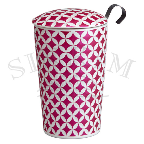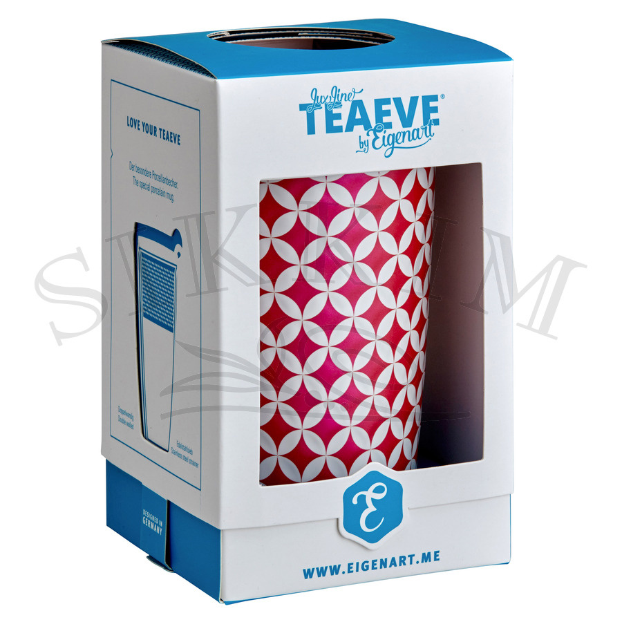 Kubek porcelanowy o podwójnych ściankach będących izolacją termiczną, dzięki której zawartość dłużej będzie trzymać właściwą temperaturę, jednocześnie chroniąc dłoń przed poparzeniem. Struktura wypukłości przypomina wyglądem kryształ, rewelacyjny wygląd i przy okazji lepsza ergonomia. W środku zmieścimy 350ml naparu, który z łatwością przygotujemy dzięki znajdującemu się w komplecie zaparzaczowi oraz przykrywce. Jako opcję można dokupić specjalną przygrywkę z tworzywa sztucznego, która przekształci kubek w zestaw typu `Tea to Go!`. Ta dekoracja jest naszkliwna, przez to nie nadaje się do zmywania w zmywarce.