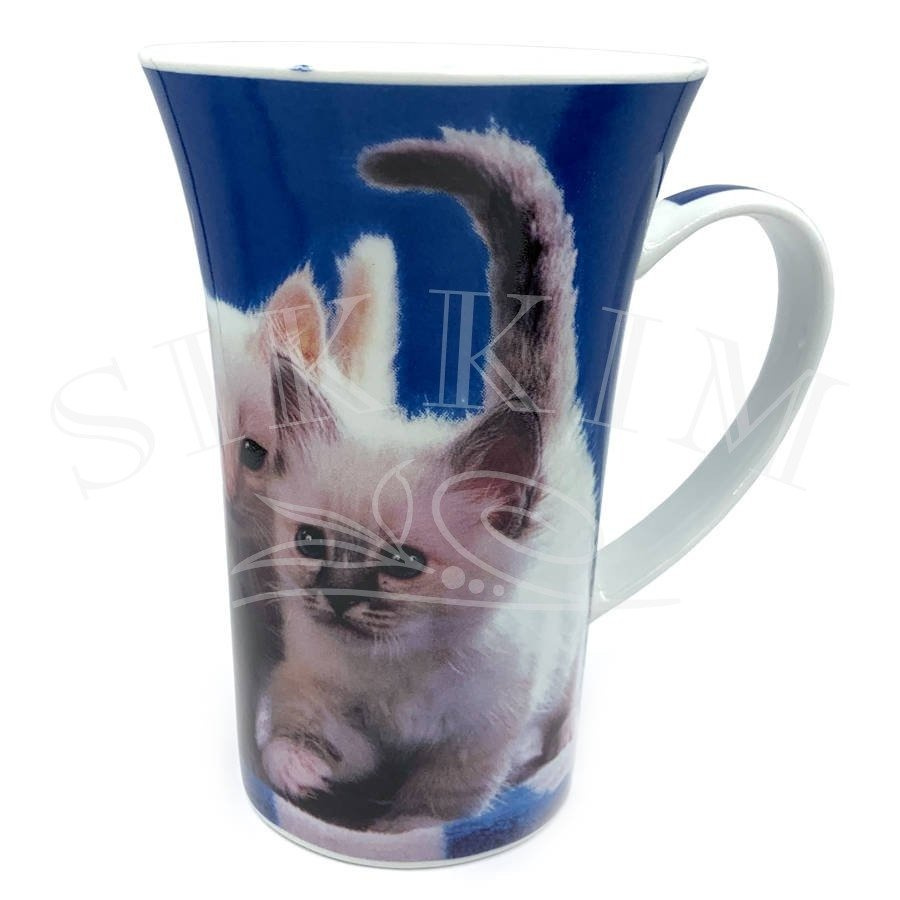 - Wysoki porcelanowy kubek ze zdjęciem słodkich dwóch białych kotów. Pojemność około 500ml.