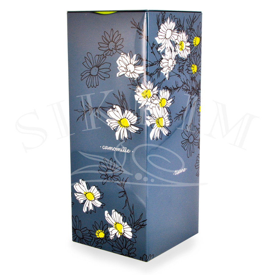 Ekskluzywny produkt od francuskiego producenta opakowań, doskonałe wykonanie i wzornictwo, trwały nadruk z elementami tłoczonymi podkreślającymi walory estetyczne puszki. Wieczko wciskane, które po zamknięciu idealnie spasowuje się z licem stanowiąc szczelne i trwałe zamknięcie. Wewnątrz puszki w jaskrawo zielonym kolorze. Wymiary zewnętrzne podstawy 102mm x 102mm orraz 245mm wysokości.