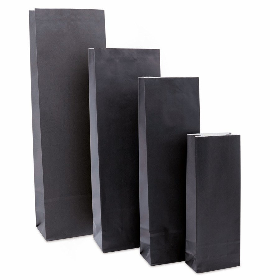 - Torebki do pakowania produktów sypkich, trójwarstwowe, wnętrze białe, na zewnątrz z matowego satynowanego papieru, dno blokowe, sprzedawana w większych opakowaniach zbiorczych.