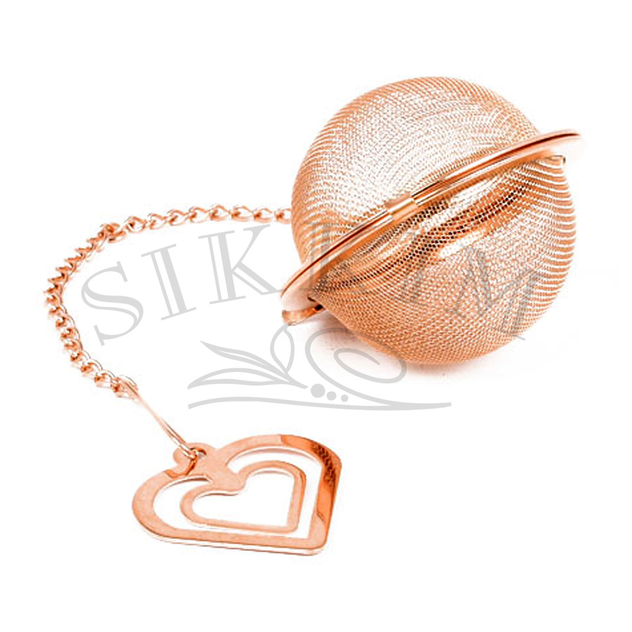 Funkcjonalny i bardzo popularny zaparzacz wykonany ze stali nierdzewnej i barwiony na modny kolor mosiądzu, gdzie otwierana kulka o średnicy około 5cm umieszczona jest na łańcuszku zakończonym dekoracyjnym serduszkiem. Łańcuszek przewiesza się przez krawędź kubka lub filiżanki, a serduszko stanowi przeciwwagę, aby zaparzacz nie utonął w naparze.