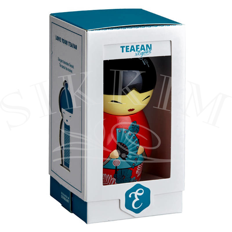 Zaparzacz do herbaty w kształcie japońskiej laleczki Kokeshi, wykonany z porcelany oraz metalu. Po podniesieniu główki pod spodem znajduje się cylindryczny metalowy zaparzacz, do którego wsypujemy herbatę. Sama główka wypełniona jest powietrzem, tak więc użyty w ten sposób zaparzacz nie zatonie nawet w głębokim kubku. Po odpowiednim czasie wyciągamy pływającą część i umieszczamy ją w korpusie gejszy, który będzie działał jako ociekacz. Przedmiot wykonany jest przez renomowanego europejskiego producenta, który gwarantuje wysoką jakość wykonania oraz długą trwałość. Laleczka Kokeshi Geiko posiada również eleganckie prezentowe opakowanie. Wymiary zaparzacza w całości to 13cm wysokości i około 6cm szerokości. Pudełko prezentowe ma wymiary 14x8cm.