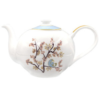 Zestaw czajniczka o pojemności 500ml z filiżanką i spodkiem, z dekoracją w gałązki kwitnącej wiśni w delikatnych pastelowych kolorach.