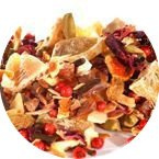 Klasyczna mieszanka owocowa o aromacie czerwonych, dojrzałych owoców, składająca się z borówki, rodzynek, kandyzowanego ananasa, papai, moreli, truskawki, płatków dzikiej róży i hibiskusa.