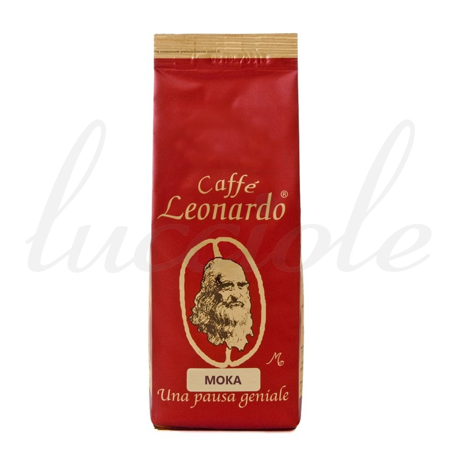 Caffe Leonardo to esencja włoskiego espresso, filiżanka pełna aromatów i toskańskiego słońca, `Una Pausa Geniale` jak mawiają Włosi oddając się typowemu dla tego regionu słodkiemu `nic-nierobieniu` czyli Dolce Farniente. Czerwona paczka kawy Leonardo `Antico Aroma` to starannie dobrana mieszanka ziaren z sita o kalibrze 18, gdzie 90% stanowi Arabica typu Punta, która odpowiada za gęsty napar z nutami melasy cukru trzcinowego oraz 10% robusta dająca gęstą jasnobeżową kremę. Kawa została firmowo zmielona do parzenia w kafetierkach Moka stawianych na gaz, french-press`ach lub filtrach papierowych i oferowana jest w paczce 250g.