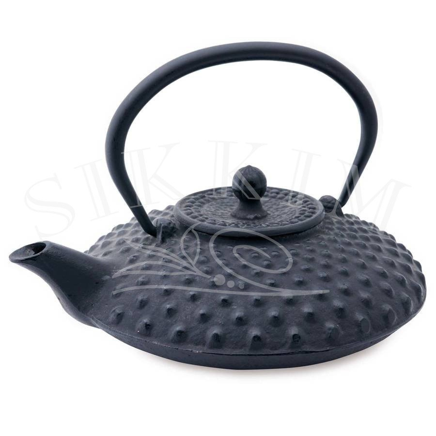 Oryginalny żeliwny czajnik o bardzo klasycznym japońskim kształcie, wypalany w czarnym kolorze i pojemności 800ml. Doskonale prezentuje się w każdym wnętrzu i nadające profesjonalnego szlifu ceremonii herbacianej. Niezwykle trwały, będzie służył latami, jak i dekorował wnętrze mieszkania. Jego wnętrze pokryte jest emalią dla łatwiejszego utrzymania czystości, wyposażony jest również w sitko do parzenia wykonane z nierdzewnej stali. Wysokość czajnika bez rączki to 10cm, razem z rączką 16cm, szerokość 22cm, a średnica otworu pod sitko to 6cm.