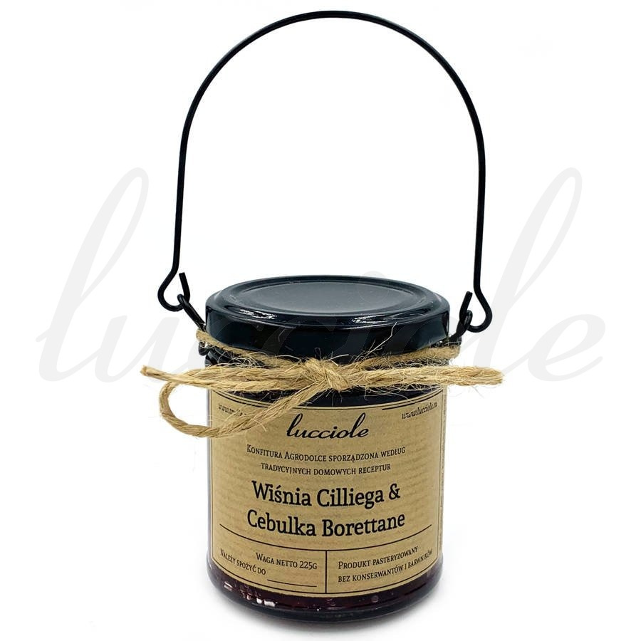 Domowe przetwory Agrodolce to wyjątkowe dla Włoch słodkie specjały z połączenia owoców i warzyw wraz z aromatycznymi przyprawami, które znajdą zastosowanie nie tylko do pieczywa, ale również do mięs i serów. Przygotowane przez Gospodarstwo Agroturystyczne z Toskanii według tradycyjnych domowych receptur wyłącznie z wyselekcjonowanych lokalnych składników. W słoiczku znajdziesz prawdziwą Confetture Artigianale o składzie: Skład: wiśnia 68%, cukier, karmelizowana cebulka Borettane, pektyny owocowe, wanilia, kwasek cytrynowy, sól, melasa cukrowa.