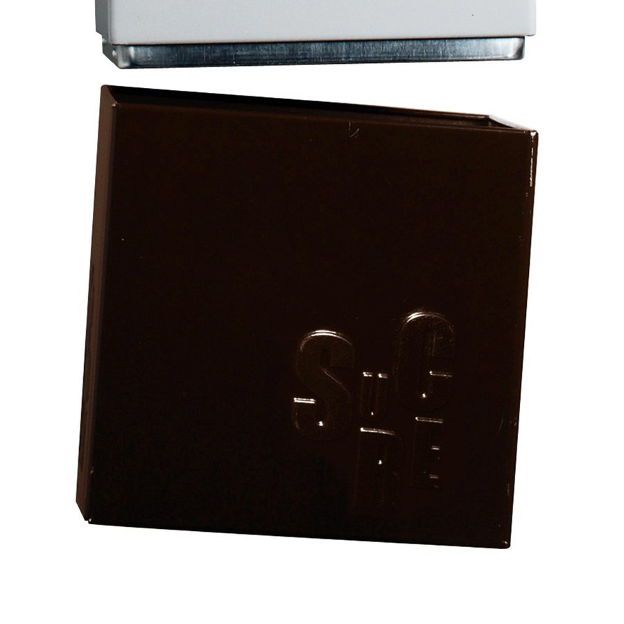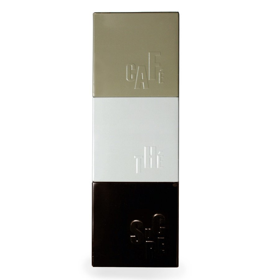 Ekskluzywny produkt od francuskiego producenta opakowań, doskonałe wykonanie i wzornictwo z estetycznymi elementami tłoczonymi. Puszki stawiane są jedna na drugą, gdzie dzięki zatrzaskom, wierzchnia puszka jest zamknięciem do znajdującej się poniżej. Górna puszka posiada wciskane wieczko, które po zamknięciu idealnie spasowuje się z licem. Z boku znajdują się napisy, po jednym dla każdej sekcji - Herbata, Kawa, Cukier.