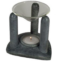 Lampka zapachowa do aromaterapii wykonana z naturalnego kamienia, wyposażona w szklany zasobnik na olejki zapachowe, do podgrzewania świeczką.