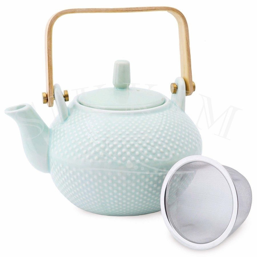 Czajnik, którego design wzorowany jest na japońskich naczyniach żeliwnych, łudząco podobny, lecz wykonany z porcelany. Jest to propozycja dla tych, którzy nie mają cierpliwości do delikatnego traktowania czajników żeliwnych i pokrywających je emalii, cenią sobie szybkość i łatwość czyszczenia oraz preferują lżejsze akcesoria. Czajnik wyposażony jest w sitko ze stali nierdzewnej oraz metalową rączkę. Wymiary naczynia do 13cm wysokości bez rączki oraz 18cm z rączką, 18cm średnicy i 7cm otworu pod przykrywką.
