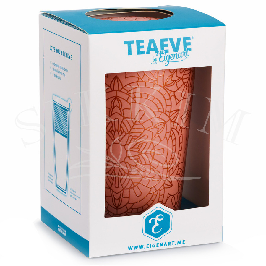 Kubek porcelanowy o podwójnych ściankach będących izolacją termiczną, dzięki której zawartość dłużej będzie trzymać właściwą temperaturę, jednocześnie chroniąc dłoń przed poparzeniem. W środku zmieścimy 350ml naparu, który z łatwością przygotujemy dzięki znajdującemu się w komplecie zaparzaczowi oraz przykrywce. Jako opcję można dokupić specjalną przygrywkę z tworzywa sztucznego, która przekształci kubek w zestaw typu `Tea to Go!`. Przy produkcji naczynia użyto techniki zdobienia pod szkliwem oraz na jego powierzchni, przez co nadruk sprawia wrażenie wielowarstwowego i trójwymiarowego. Doskonały efekt gwarantowany, jednak przy takiej dekoracji nie zaleca się zmywania kubka w zmywarce.