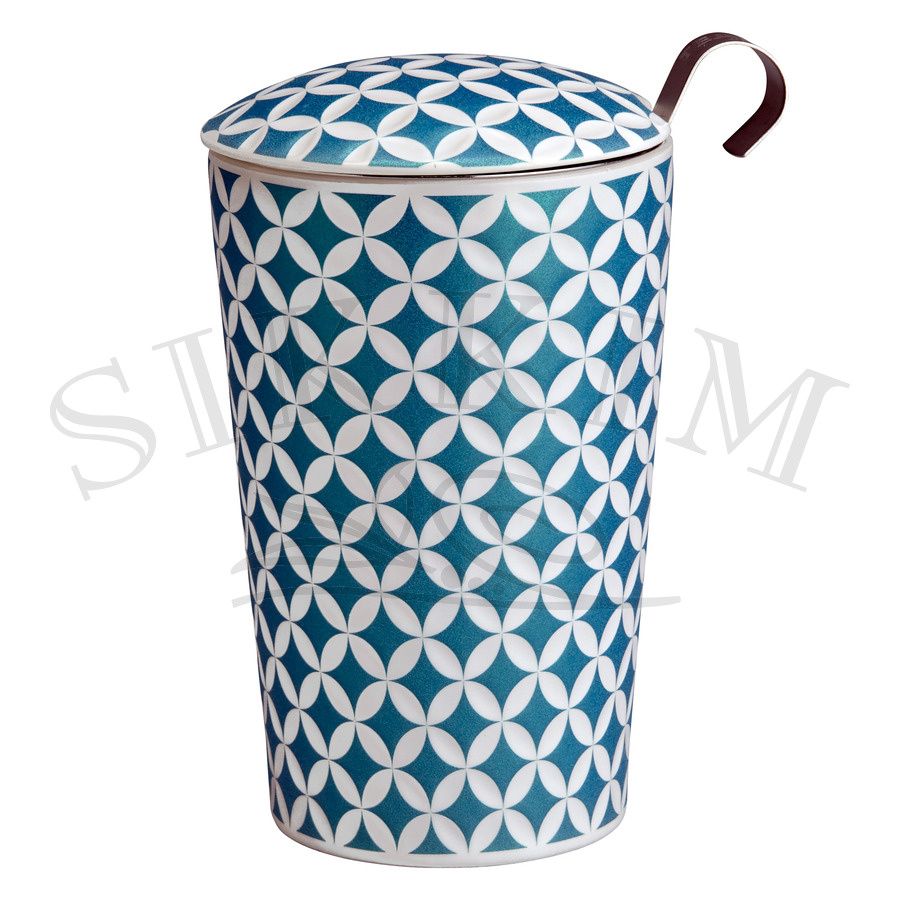 Kubek porcelanowy o podwójnych ściankach będących izolacją termiczną, dzięki której zawartość dłużej będzie trzymać właściwą temperaturę, jednocześnie chroniąc dłoń przed poparzeniem. Struktura wypukłości przypomina wyglądem kryształ, rewelacyjny wygląd i przy okazji lepsza ergonomia. W środku zmieścimy 350ml naparu, który z łatwością przygotujemy dzięki znajdującemu się w komplecie zaparzaczowi oraz przykrywce. Jako opcję można dokupić specjalną przygrywkę z tworzywa sztucznego, która przekształci kubek w zestaw typu `Tea to Go!`. Ta dekoracja jest naszkliwna, przez to nie nadaje się do zmywania w zmywarce.