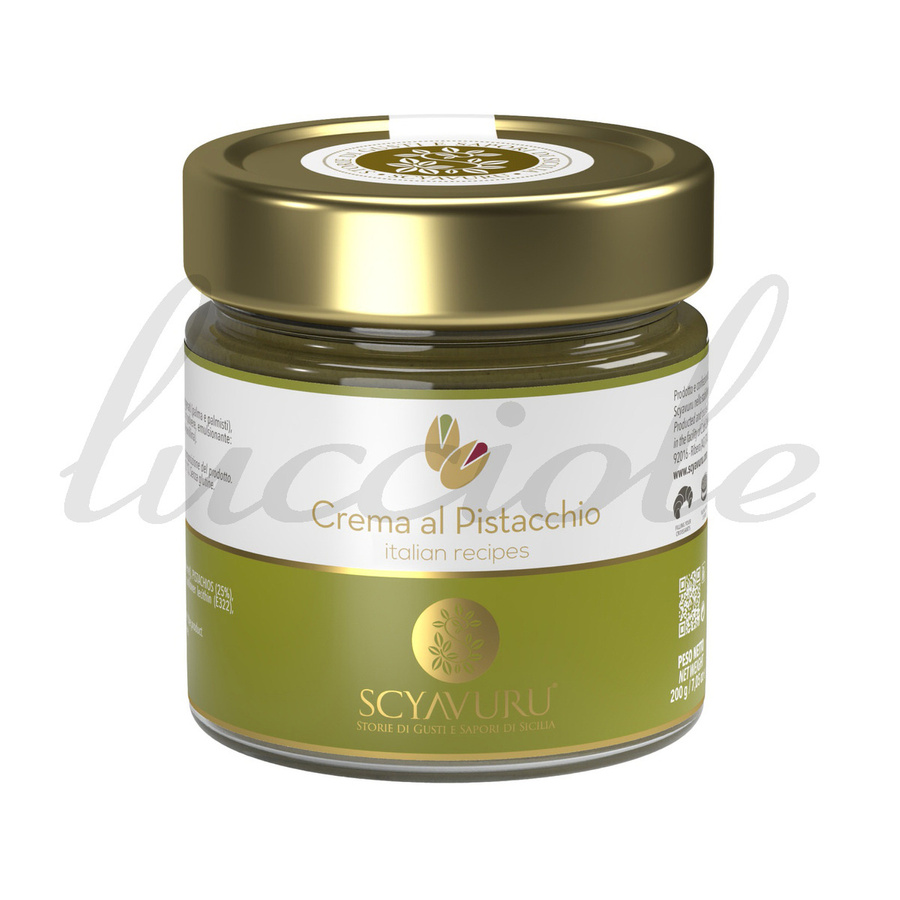 • Sycylijski krem o delikatnej konsystencji, jako masa do smarowania pieczywa lub naleśników, wypełnienie do wypieków, nadzienie do rogalików oraz wielu innych zastosowań. Produkt `Crema al Pistacchio` pochodzi od renomowanego producenta `Scyavuru`.