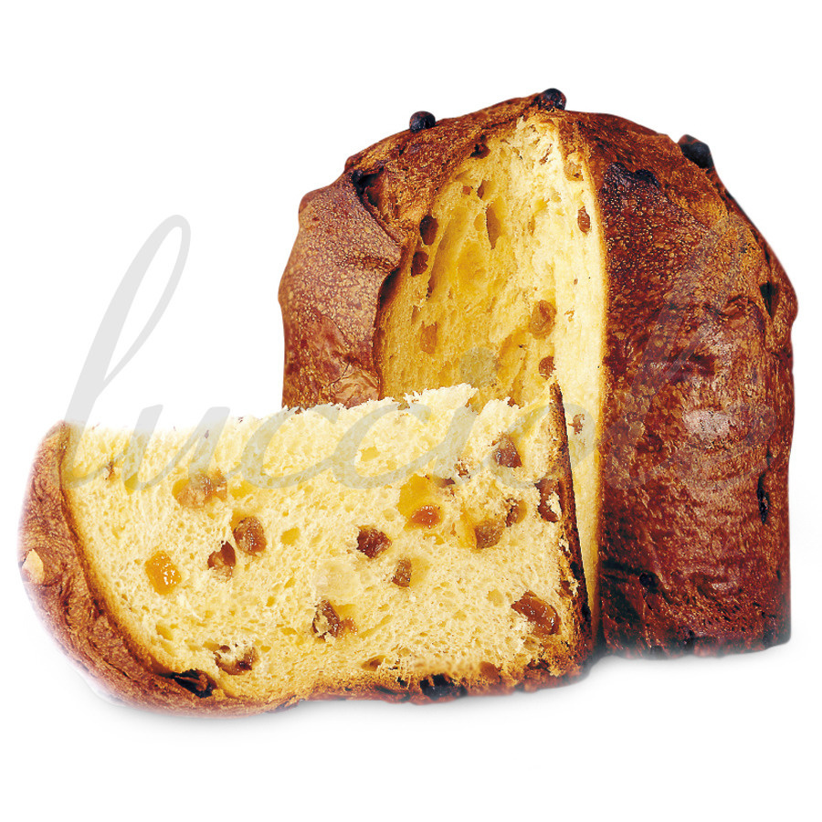 Składniki: mąka pszenna typu '0', rodzynki sułtańskie 16%, masło, cukier, żółtka jaj, naturalny zakwas pszenny 6%, kandyzowana skórka pomarańczowa 4% (skórka pomarańczy, syrop glukozowo-fruktozowy, sacharoza, regulator kwasowości: kwasek cytrynowy), syrop z cukru inwertowanego, jaja, emulgatory: mono i diglycerydy kwasów tłuszczowych, sól, mąka pszenna słodowana, białka mleka, naturalne aromaty pozyskiwane z owoców cytrusowych oraz wanilii, konserwant: kwas askorbinowy. Może zawierać śladowe ilości soi.